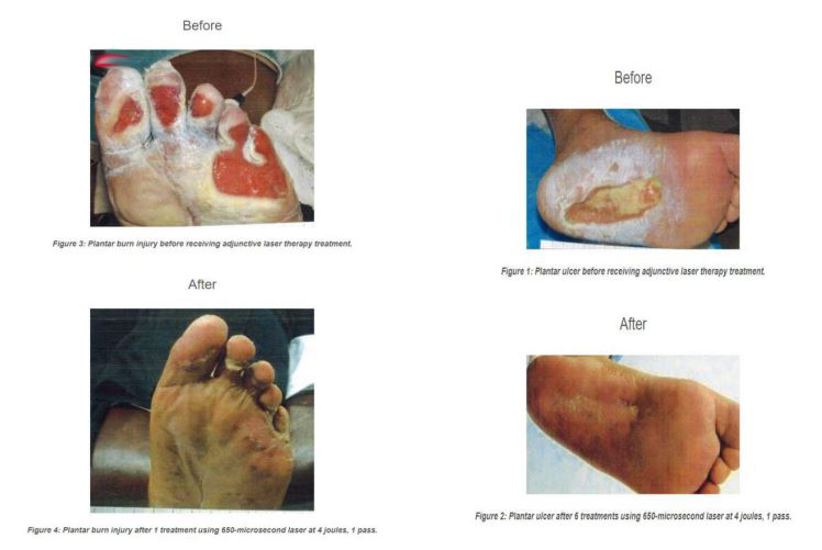 “Laser light stimulates the building blocks of collagen, which is important in the wound healing of damaged tissues. Collagen is the essential protein required to replace old tissue or to repair injuries. As a result, the laser is effective on open wounds and burns.”