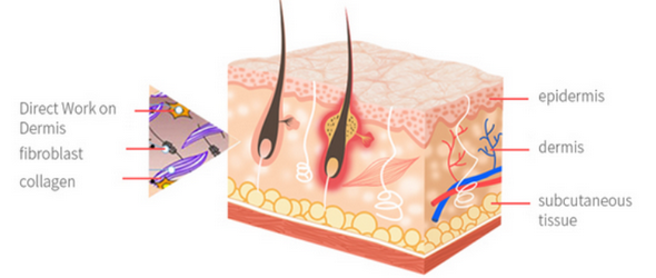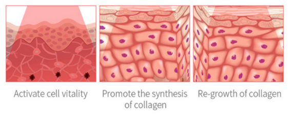 - LED red light can promote the growth of skin collagen. It has the good effect of Acne scars Treatment, Stimulating the circulation of blood, relieving the pain of allergic dermatitis. The high purity of the red light can penetrate the skin deep to photochemical activity increased to accelerate cell regeneration. The new supersedes the old., red light irradiation can effectively increase collagen cell activity, accelerate the elimination of wastes or dead cells from the tissue and stimulate fibroblast growth. Therefore, the red light can repair damaged skin, remove fine lines and restore skin elasticity, improve dull skin, make your skin tender, white, fresh. Besides, the red light can eliminate skin inflammation, have a positive effect on pathological changes of cells.