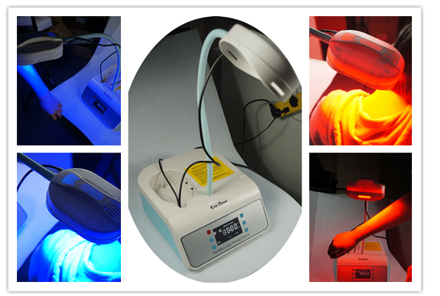 - Two types of light into one device, Red light, and Blue light could be switched for different treatments.
