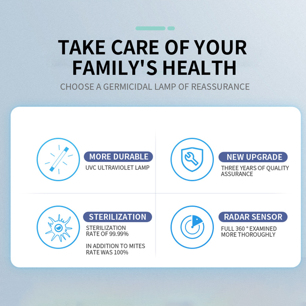 By irradiating microorganisms in the UVC band, the DNA and RNA of bacteria and viruses are destroyed, and the bacteria and viruses lose their vitality and reproduction. In addition, ultraviolet radiation can also convert oxygen molecules in the air into ozone for sterilization. Stable and easy to decompose, the strong oxidizing property changes the structure of bacteria and viruses to achieve the purpose of killing, so as to achieve double sterilization